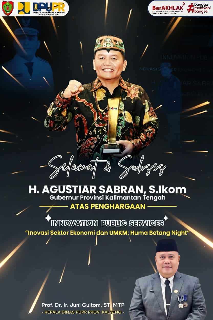 PALANGKA RAYA, Kalteng.co – Kepala Dinas Pekerjaan Umum dan Penataan Ruang (PUPR) Provinsi Kalimantan Tengah, Prof. Dr. Ir. Juni Gultom, ST., MTP., menyampaikan ucapan selamat dan apresiasi atas prestasi yang diraih Gubernur H. Agustiar Sabran, S.Ikom, yang menerima penghargaan nasional Innovation Public Services dari TV One dalam ajang Inovasi Membangun Negeri 2025 melalui program “Huma Betang Night”, pada Jumat malam (7/11/2025).
