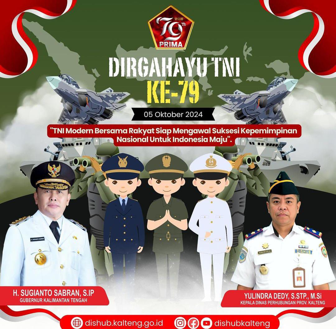 PALANGKA RAYA, Kalteng.co – Memperingati Hari Ulang Tahun Tentara Nasional Indonesia (TNI) yang ke-79, Kepala Dinas Perhubungan Kalimantan Tengah (Kalteng), Yulindra Dedy, S., STP., M.Si., mengucapkan selamat kepada TNI serta menyampaikan doa, dukungan, dan harapan agar TNI terus menjadi penjaga kedaulatan dan keamanan negara.