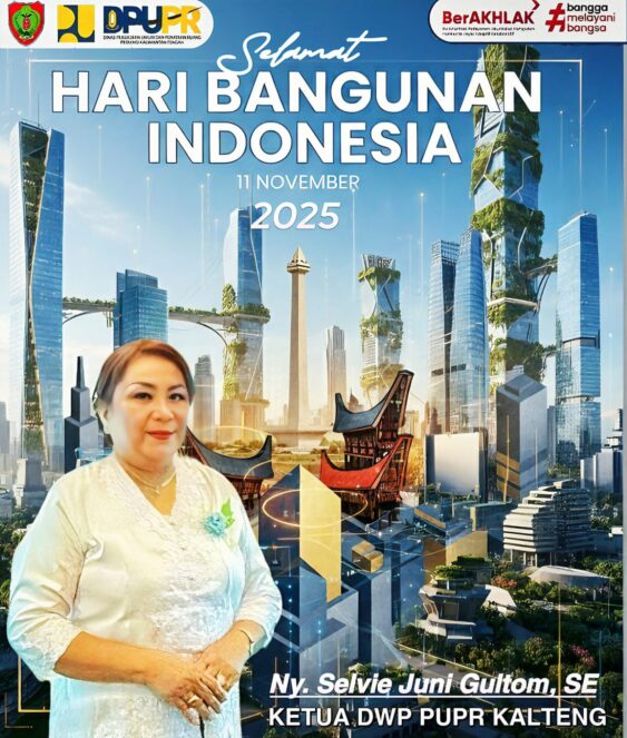 PALANGKA RAYA, Kalteng.co – Dalam momentum Hari Bangunan Indonesia, yang diperingati setiap 11 November, Ketua Dharma Wanita Persatuan (DWP) Dinas Pekerjaan Umum dan Penataan Ruang (PUPR) Kalteng, Ny. Selvie Juni Gultom, SE., menyampaikan ucapan selamat sekaligus apresiasi kepada seluruh insan konstruksi dan pelaku pembangunan di Indonesia, khususnya di Kalimantan Tengah.