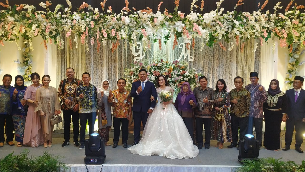 PALANGKA RAYA, Kalteng.co– Unsur pimpinan dan anggota DPRD Kalteng menghadiri resepsi Pernikahan putera Ketua Dewan Pimpinan Wilayah (DPW) Partai NasDem Kalteng, Giovanni Yacob Dermawan berserta pasangan, di Palace Ballroom Hotel Aquarius, Minggu (18/12/2022).