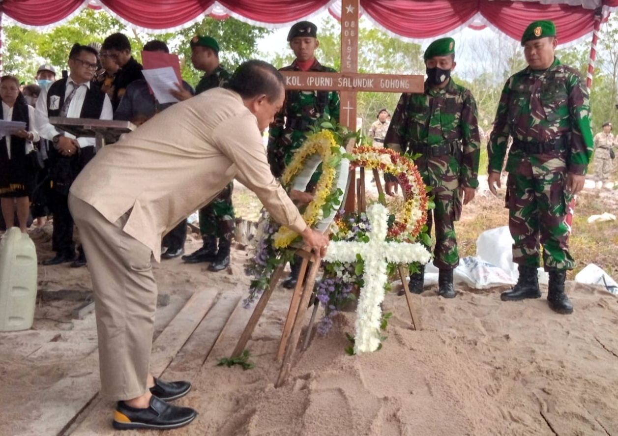 PALANGKA RAYA, Kalteng.co – Wakil Ketua I DPRD Kalteng H Abdul Razak mengikuti prosesi pemakaman mantan Wali Kota Palangka Raya periode 1998-2003, Kolonel (Purn) Salundik Gohong, di TPU, Km 12, Jalan Tjilik Riwut, Minggu (26/2/2023).