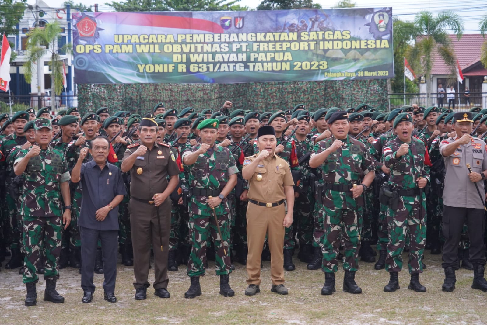 Sebagai informasi, pada hari Kamis, 30 Maret 2023, Panglima TNI Laksamana TNI Yudo Margono didampingi Gubernur Kalteng H Sugianto Sabran, secara resmi melepas Satgas Yonif R 631/Atg melaksanakan tugas Operasi Pengamanan Wilayah Objek Vital (Obvit) Nasional PT. Freeport Indonesia, di Papua Barat.