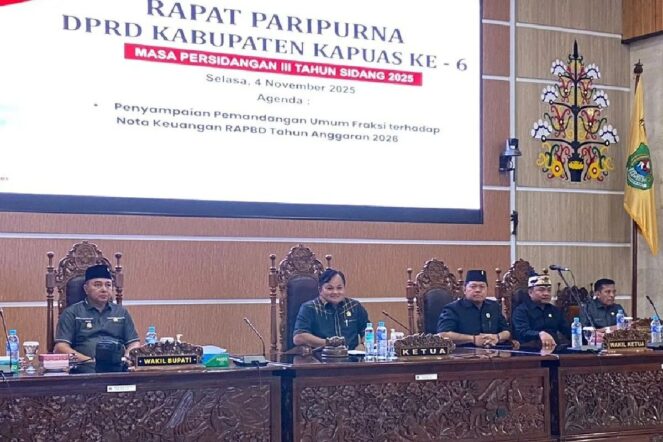 KUALA KAPUAS, Kalteng.co – DPRD Kapuas mulai memasuki tahapan penting penyusunan RAPBD 2026 dengan mendengarkan pemandangan umum dari seluruh fraksi dalam rapat paripurna ke-6 masa persidangan III tahun sidang 2025. Agenda tersebut menjadi awal proses penyelarasan arah kebijakan anggaran antara legislatif dan eksekutif.