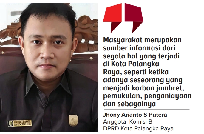 Demikian disampaikan Anggota Komisi B DPRD Kota Palangka Raya, Jhony Arianto S Putera . Menurutnya, masyarakat merupakan sumber informasi dari segala hal yang terjadi di Kota Palangka Raya, seperti ketika adanya seseorang yang menjadi korban jambret, pemukulan, penganiayaan dan sebagainya. “Dari masyarakat ini lah tentunya kepolisian bisa mendapatkan informasi yang kemudian menindaklanjuti dengan melakukan berbagai penyelidikan,” ucapnya belum lama ini.