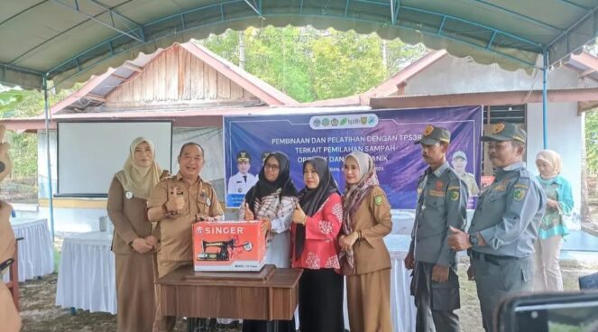 Dalam kesempatan yang sama, DLH Provinsi Kalimantan Tengah juga menyerahkan secara simbolis bantuan mesin jahit kepada pelaku UMKM di Kalampangan, yang diterima langsung oleh Lurah Kalampangan, Yunita Martina, SH., M.A.P. Bantuan ini ditujukan untuk mendukung pelaku usaha lokal dalam mengolah bahan daur ulang menjadi tas ramah lingkungan sebagai pengganti kantong plastik.