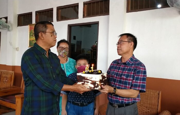 “Selamat ulang tahun pak Bupati. Semoga bapak dan ibu selalu dalam keadaan sehat, panjang umur dan sukses dalam menjalankan tugas,” kata pria yang juga Ketua PWNU Kalteng, sambil menyerahkan kue ulang tahun kepada Sakariyas.