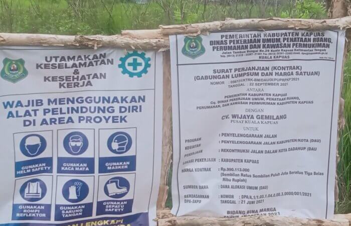 Wakil Rakyat Asal Dadahup ini, menyoroti proyek Rekontruksi Jalan Dalam Kota Dadahup yang dianggarkan dari Dana Alokasi Umum (DAU) 2021 senilai Rp990.113.000, di mana kontraknya Juni 2021 serta proyek dikerjakan CV WG.