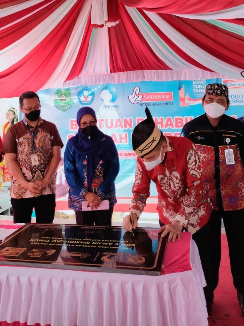 Bupati dalam sambutannya menyampaikan ucapkan terima kasih atas bantuan rehab gedung SDN 5 Anjir Mambulau Timur, dari dunia usaha yang ada di Kabupaten Kapuas dengan program Corporate Social Responsibility (CSR).