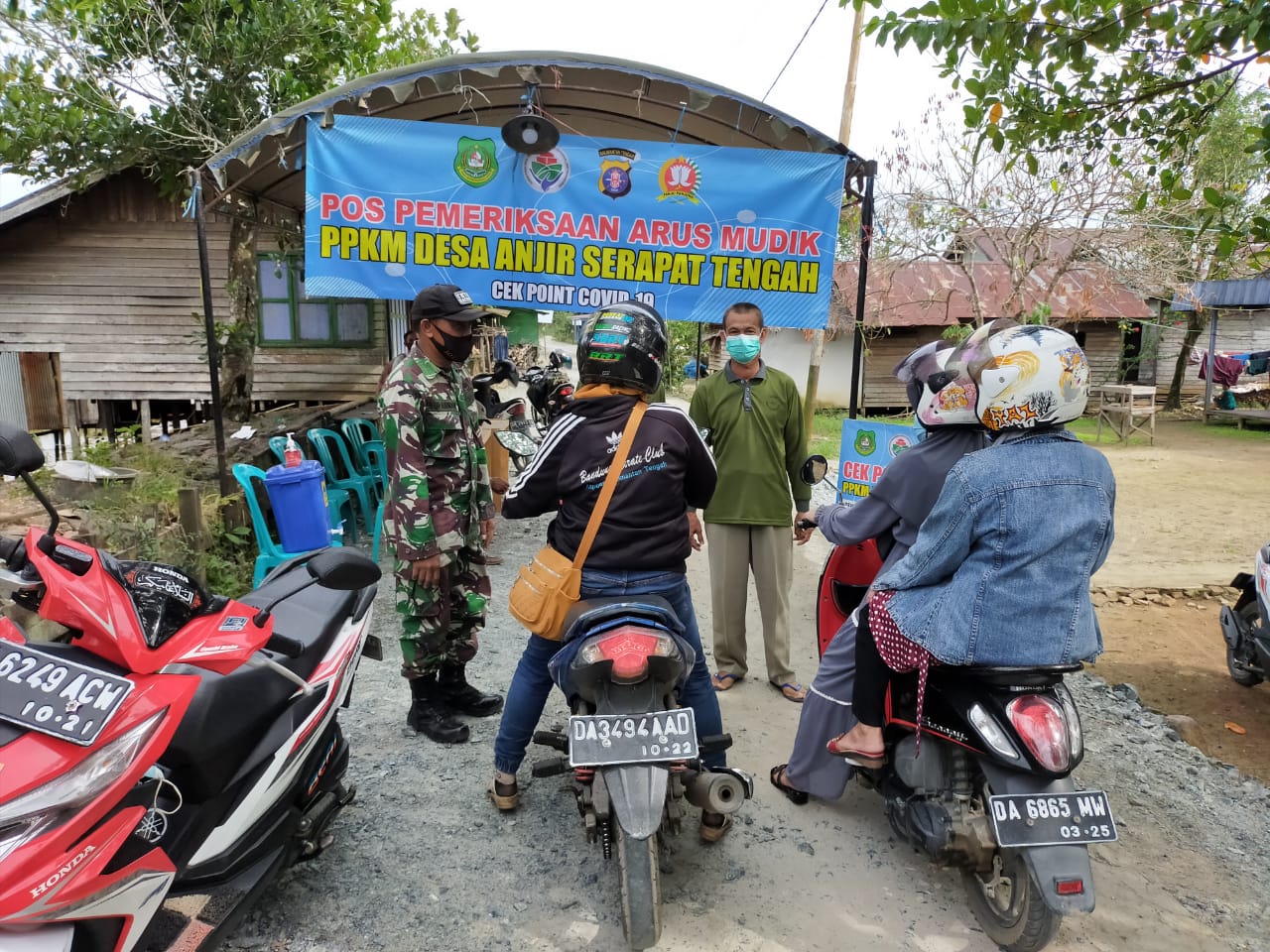 Kapolsek melanjutkan, dalam kegiatan tersebut, dua personel Polsek Kapuas Timur bergabung dengan petugas PPKM Desa melaksanakan pemeriksaan, dan pengawasan arus mudik bagi pengendara roda dua yang melewati jalan Alternatif tepi sungai Anjir Serapat KM 12,5 di Desa Anjir Serapat Tengah.