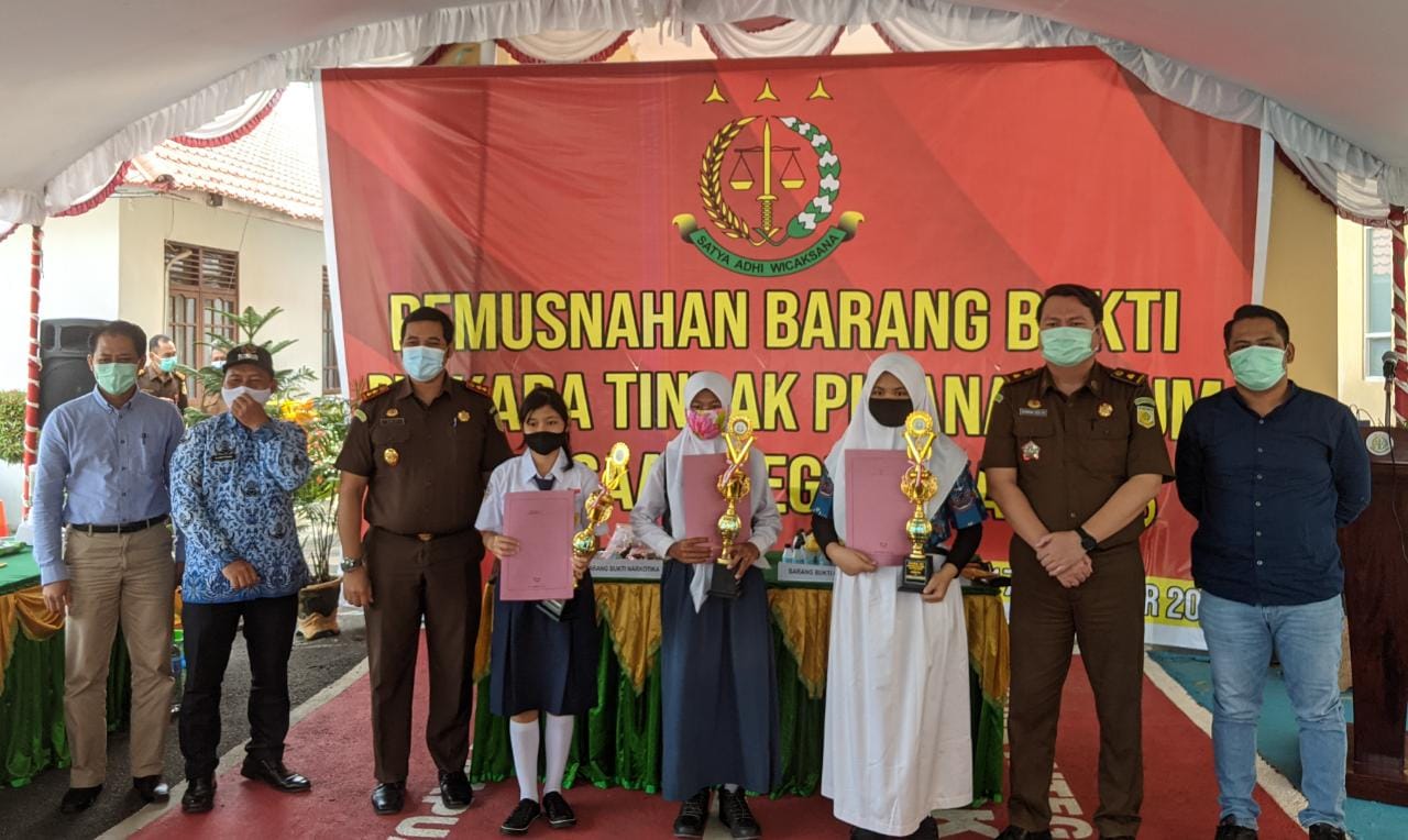 Pemberian penghargaan diberikan pada pelajar, Kamis (17/12) di Halaman Kejari Kapuas yang langsung disampaikan Kepala Kejaksaan (Kajari) Kapuas Arif Raharjo beserta para Kasi.