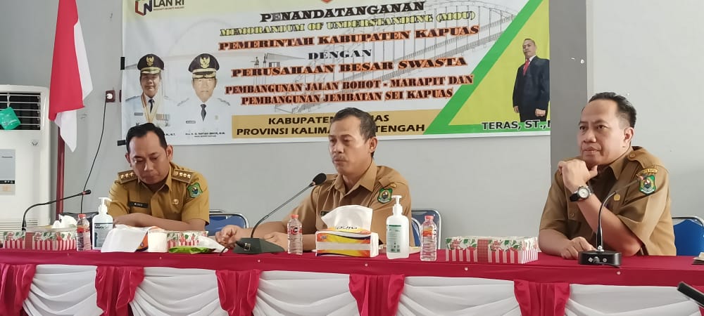 Sehingga diinisiasi oleh Kepala Dinas Pekerjaan Umum Penataan Ruang Perumahan dan Kawasan Pemukiman (PUPR-PKP) Kapuas Teras, ST, MT, pertemuan dengan perusahaan untuk membantu membangun infrastruktur jalan dan jembatan.