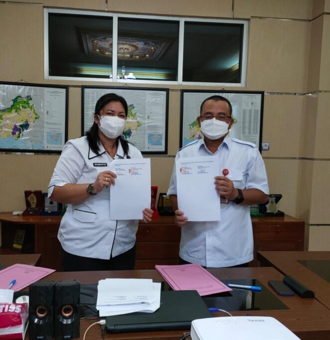 Kepala DiLH Kapuas, Kusmiatie, ST, M.Si dan Kepala Dinas Kehutanan (Dishut) Kalteng, Sri Suwanto, MS, melakukan Penandatanganan Nota Kesepahaman Bersama tentang Percepatan Pengakuan dan Perlindungan Masyarakat Hukum Adat dan Hutan Adat di Kabupaten Kapuas Provinsi Kalteng, Rabu (8/9/2021).