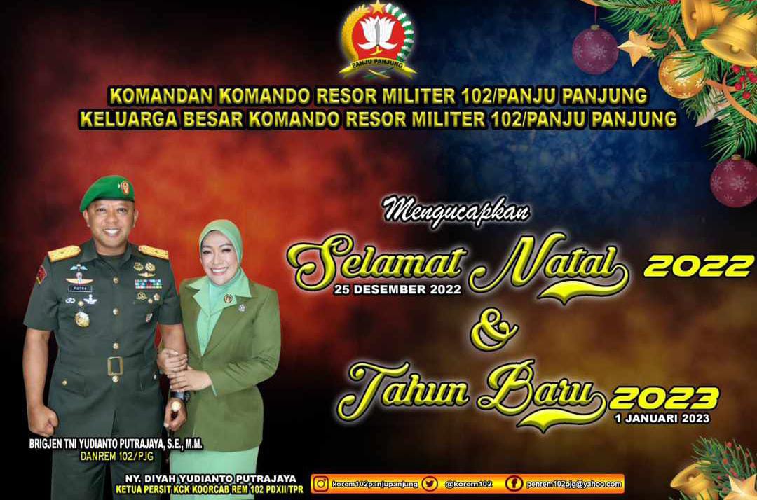 PALANGKA RAYA, Kalteng.co – Komandan Korem (Danrem) 102/ Panju Panjung (Pjg) Brigjen TNI Yudianto Putrajaya, SE.,MM, mengucapkan selamat menyambut hari raya Natal kepada seluruh jajaran Korem 102/Pjg, Mitra Kerja, serta warga masyarakat Kalimantan Tengah (Kalteng) yang merayakan.