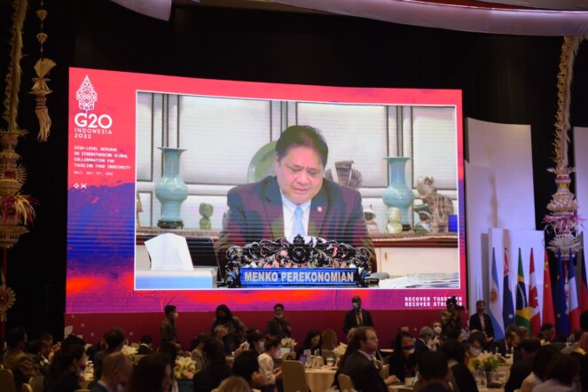 Dalam G20 High Level Seminar yang bertajuk “Strenghtening Global Collaboration for Tackling Food Insecurity” di Bali, Jumat (15/7/2022), Menteri Koordinator Bidang Perekonomian Airlangga Hartarto yang hadir secara virtual menyampaikan bahwa negara-negara di dunia perlu mempercepat dan memperkuat kolaborasi global untuk mengatasi tantangan yang ada dalam ketahanan pangan.