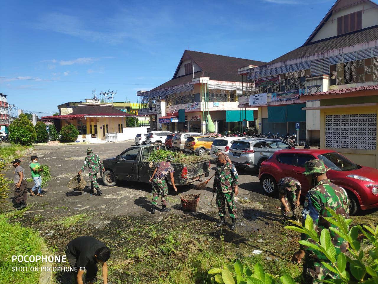 Kegiatan Denpom XII/1 Sintang dengan Dinas Kebersihan Pemerintah Kabupaten Sintang, dan masyarakat sekitar Terminal Pasar Inpres Kabupaten Sintang pada, Selasa tanggal 08 Juni 2021.