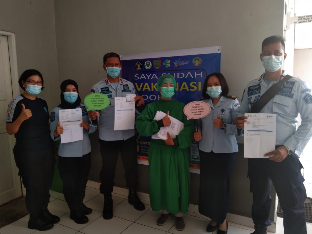 Rasa antusias terlihat di tengah pegawai yang sedang antre menjalani vaksin. Lapas Palangka Raya, merupakan salah satu UPT di Kemenkumham Kalteng yang turut mendapat jatah vaksinasi bagi pegawai.