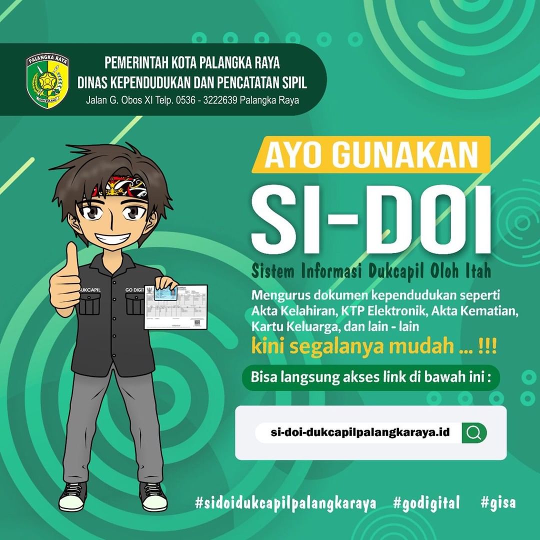 Yaitu layanan Sistem Informasi Dukcapil Oloh Itah (Si Doi) yang di inisiasi oleh Dinas Kependudukan dan Catatan Sipil Kota Palangka Raya, dalam bentuk layanan website secara online.