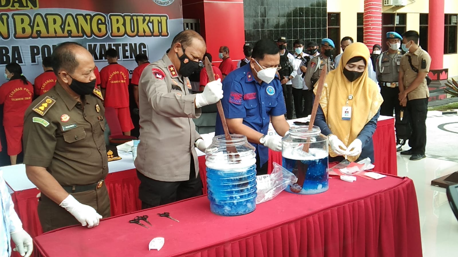 Kegiatan tersebut berlangsung di Lobi Mapolda Kalteng. Dipimpin Kapolda Kalteng Irjen Pol Nanang Avianto. Kemudian dihadiri oleh Kepala BNNP Kalteng, pihak Kejaksaan dan BPOM Palangka Raya, Rabu (16/3/2022).