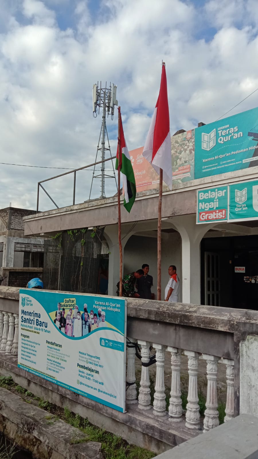 Nampak sebuah bendera Negara Palestina berkibar bersanding dengan Bendera Merah Putih didepan markas yayasan anak mesjid yang notabene tidak diperkenankan berkibar tanpa seizin kepala daerah setempat.