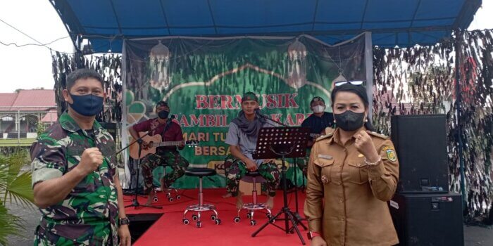 PALANGKA RAYA, Kalteng.co – Dalam rangka memeriahkan bulan Suci Ramadan 1443 H, Korem 102/Pjg menurunkan Band Akustik terbaiknya untuk menghibur warga masyarakat yang sedang berbelanja dipasar Ramadan, Jalan AIS Nasution, Kelurahan Langkai, Kecamatan Pahandut, Kota Palangka Raya.