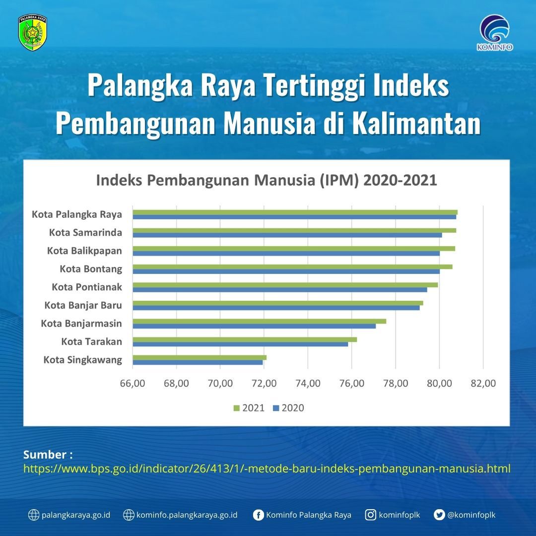 PALANGKA RAYA, Kalteng.co – Berdasarkan data dari Badan Pusat Statistik (BPS) Kota Palangka Raya meraih nilai indeks 81,5 untuk Indeks Pembangunan Manusia (IPM) pada tahun 2020 dan tahun 2021 lalu.