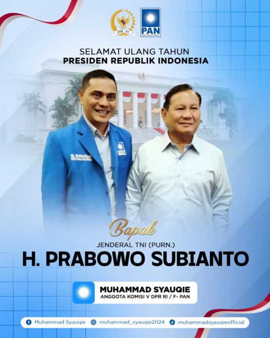 JAKARTA, Kalteng.co – Anggota Komisi V DPR RI dari Fraksi Partai Amanat Nasional (PAN), Muhammad Syauqie, S.Hut., menyampaikan ucapan selamat ulang tahun ke-74 kepada Presiden Republik Indonesia, H. Prabowo Subianto, yang diperingati pada Jumat (17/10/2025).