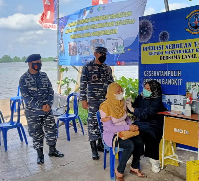 Kali ini serbuan vaksinasi maritim ke-49 digelar kembali oleh Lanal Banjarmasin bertempat di Pos TNI AL Trisakti yang terletak di Jln. Barito Hilir Kec. Banjarmasin Barat dengan menggunakan Vaksin jenis Sinovac, yang melibatkan Nakes sekaligus sebagai Tim Vaksinator dari Balai Pengobatan (BP) Lanal Banjarmasin dan Dinkes Kota Banjarmasin sebanyak 15 personel.