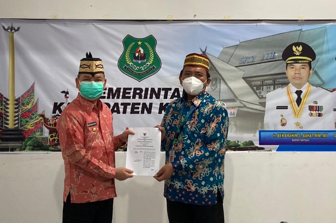 KUALA KAPUAS, Kalteng.co – Pasca penandatanganan Memorandum of Understanding (MoU) antara Bupati Kapuas Ir. Ben Brahim S.Bahat, MM. MT dan Mendikbudristek Nadiem Anwar Makarim, BA., MBA tentang Program Sekolah Penggerak (PSP), naskah MoU dimaksud diserahkan Bupati kepada Kadisdik, Jum’at (9/7/2021) pagi di ruang rapat Bappeda Kabupaten Kapuas.