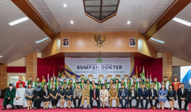 PALANGKA RAYA, Kalteng.co – Fakultas Kedokteran Universitas Palangka Raya (FK UPR), menggelar pelantikan dan pengambilan sumpah terhadap 22 orang dokter baru di Aula Rahan, lantai 2 Gedung Rektorat UPR, Rabu (23/07/2024).