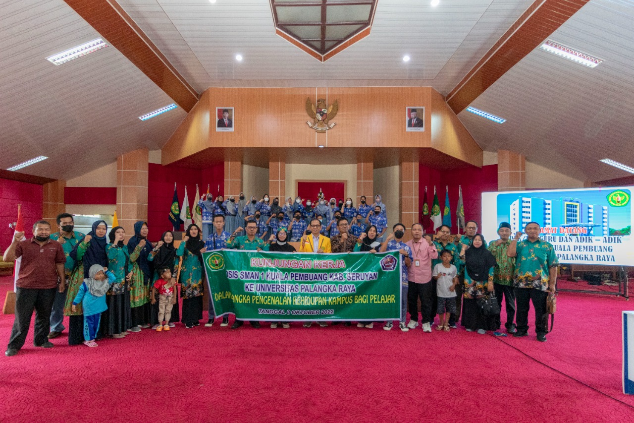 PALANGKA RAYA, Kalteng.co – Rektor Universitas Palangka Raya (UPR), Prof. Dr. Ir. Salampak, M.S., didampingi ketua Tim Promosi, Dr. H. Slamet Winaryo, M.Si, menerima 26 siswa, 18 guru dan Kepala Sekolah SMAN-1 Kuala Pembuang, Kabupaten Seruyan, di Aula Rahan Gedung Rektorat UPR, belum lama ini.