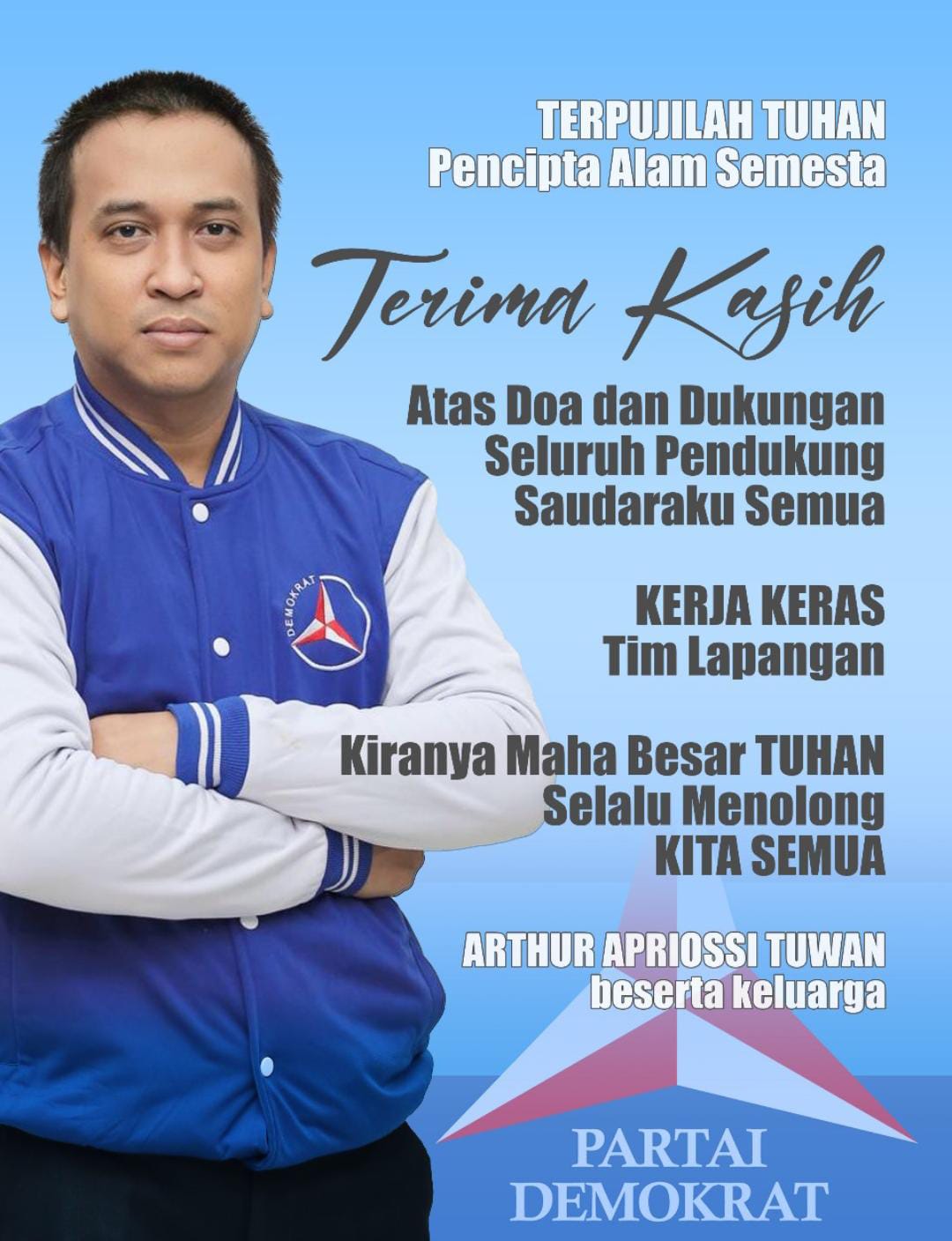 Caleg Demokrat Arthur Apriossi Tuwan Kembali Duduki DPRD Kota Palangka Raya
