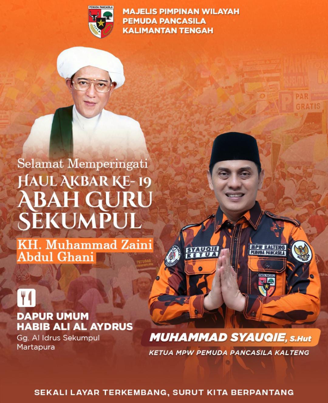 “Pemuda Pancasila, teruma Prov. Kalimantan Tengah, berkomitmen untuk terus melakukan kegiatan-kegiatan positif yang bisa membantu masyarakat. Seperti yang kami lakukan dalam beberapa hari ini, mudah-mudahan apa yang kami berikan dapat bermanfaat bagi warga masyarakat yang mengikuti haul abah guru sekumpul,” ujar Syauqie.
