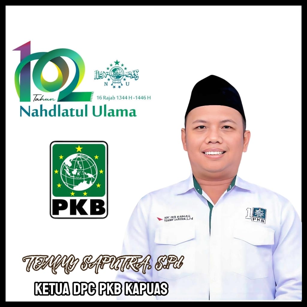 KUALA KAPUAS, Kalteng.co – Ketua Dewan Pengurus Cabang Partai Kebangkitan Bangsa (DPC PKB) Kabupaten Kapuas, Tommy Saputra, S.Pd., menyampaikan ucapan Selamat Hari Lahir Nahdlatul Ulama (NU) yang ke-102. Momentum ini diperingati pada 16 Rajab 1446 H atau bertepatan dengan Kamis, 16 Januari 2025.