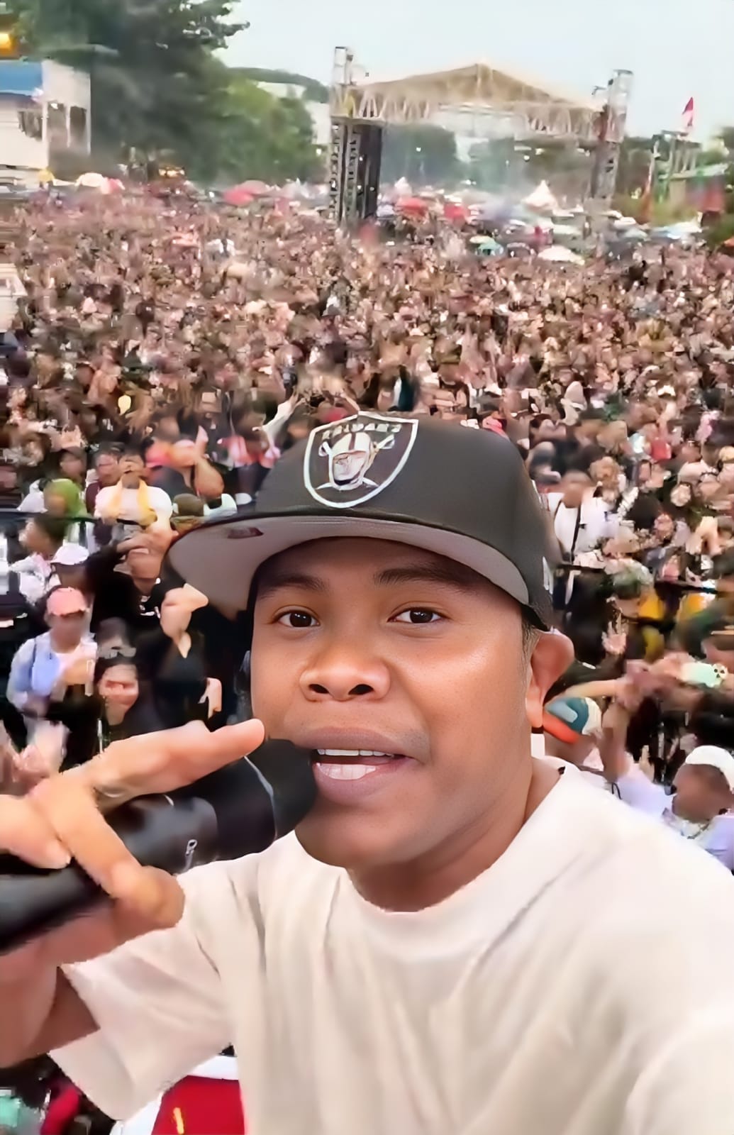 Massa yang hadir berasal dari berbagai kalangan, mulai dari pemuda hingga orang tua, menciptakan suasana penuh semangat dan solidaritas. Kampanye tersebut semakin meriah dengan kehadiran artis ternama seperti grup hip-hop populer NDX A.K.A., yang menghibur ribuan pendukung dengan lagu-lagu hits mereka.