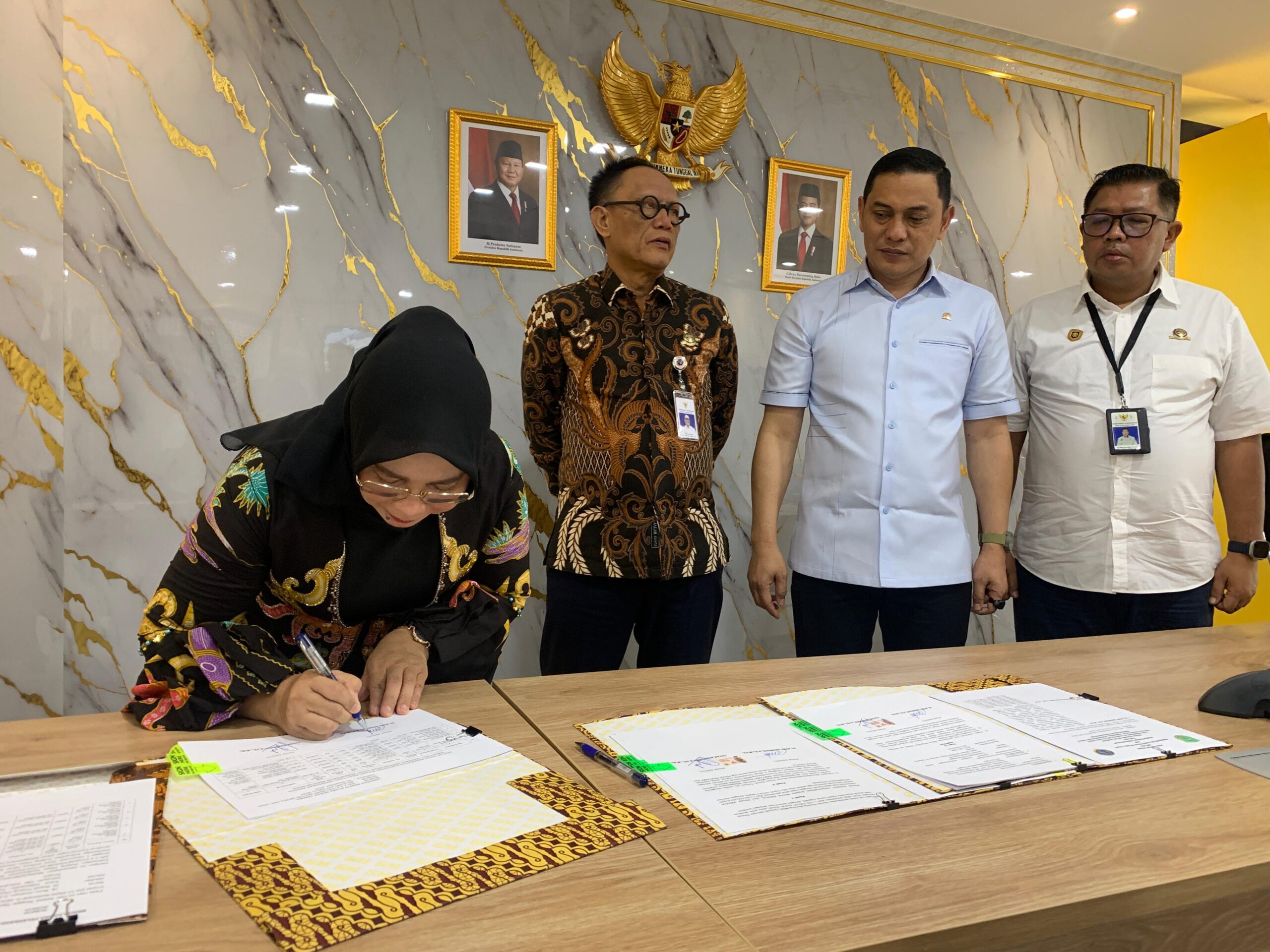 Penandatanganan Naskah Perjanjian Hibah Daerah (NPHD) dan Berita Acara Serah Terima (BAST) Barang Milik Daerah (BMD) berupa tanah dari Pemerintah Kabupaten Pulang Pisau kepada Ditjen Perhubungan Darat berlangsung di Ruang Rapat Singosari, Gedung Karsa, Kementerian Perhubungan RI, Selasa, (03/12/2024).