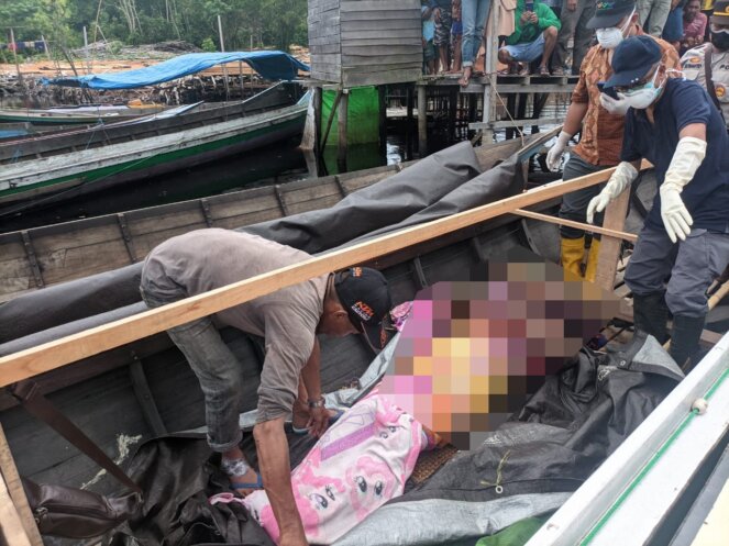 Jenazah korban saat itu langsung di angkat warga ke atas kelotok. Untuk mengevakuasi korban sambil menunggu tim dari Puskesmas Sebangau Kuala.