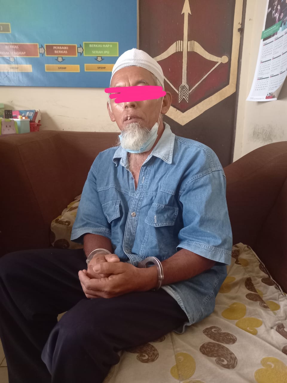 Selanjutnya tersangka membawa anak korban ke warung milik anak tersangka. Lalu tersangka dan anak korban masuk ke dalam warung. Lalu tersangka menyuruh anak korban untuk membuka celana dalam dan berbaring di kasur lalu tersangka menyetubuhi korban.