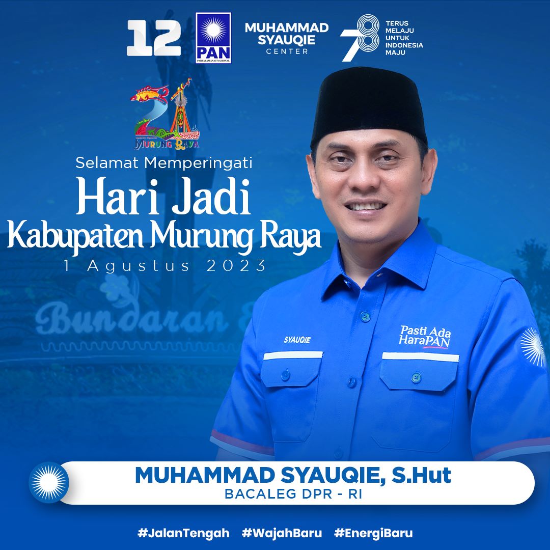 Sebagai bentuk partisipasi sekaligus memeriahkan hari jadi Kabupaten Murung Raya ke-21, Ketua Badan Pemenangan Pemilu (BAPILU) DPW PAN Kalimantan Tengah (Kalteng), Muhammad Syauqie, S.Hut, turut memberikan ucapan selamat.