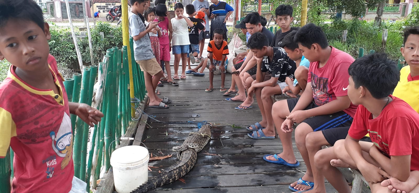 Warga Kotawaringin Timur Beri Makan Buaya Muara yang Muncul di Permukiman