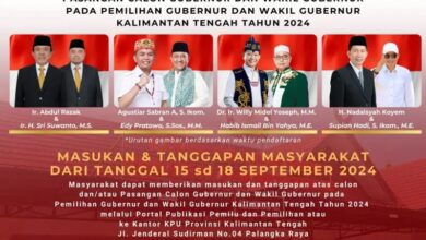PALANGKA RAYA, Kalteng.co – Komisi Pemilihan Umum (KPU) Kalteng membuka kesempatan seluas-luasnya pada masyarakat menyampaikan tanggapan atau masukan terhadap pasangan…