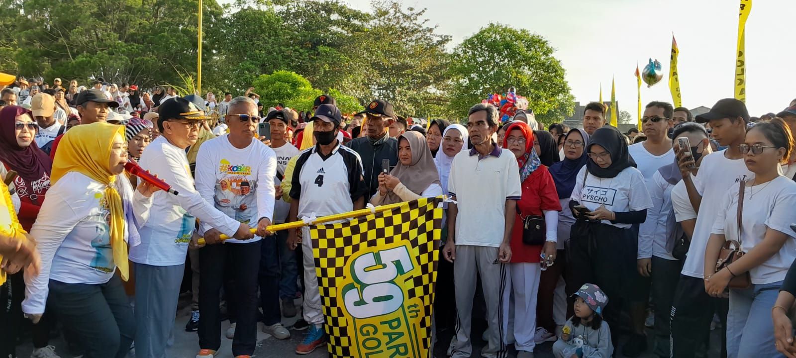 Dengan dibalut kegiatan jalan sehat berhadiah umroh dan doorprize lainnya. Antusias masyarakat sangat luar biasa mereka dengan sukarela hadir dan memberikan dukungan.