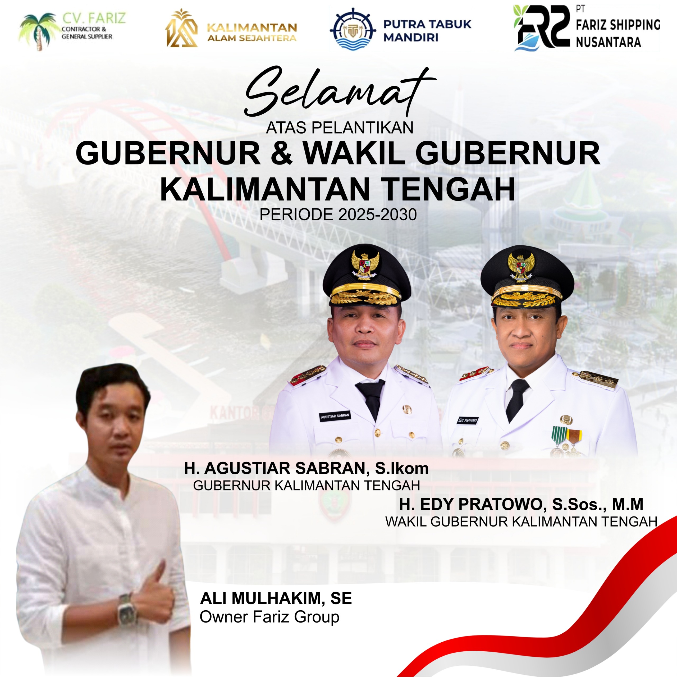 KUALA KAPUAS, Kalteng.co – Owner Fariz Group, Ali Mulhakim, menyampaikan ucapan selamat kepada H. Agustiar Sabran dan H. Edy Pratowo yang telah resmi dilantik sebagai Gubernur dan Wakil Gubernur Kalimantan Tengah (Kalteng) periode 2025-2030. Pelantikan tersebut dilakukan langsung oleh Presiden Prabowo Subianto di Istana Negara, Jakarta, Kamis, 20 Februari 2025.