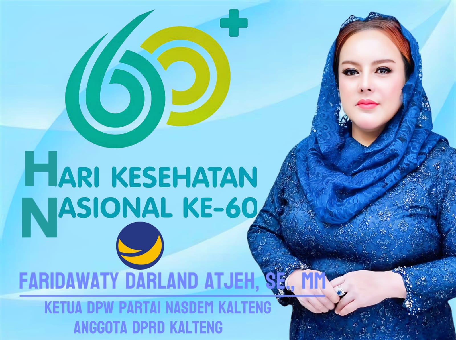 PALANGKA RAYA, Kalteng.co – Ketua DPW NasDem Provinsi Kalimantan Tengah (Kalteng), Faridawaty Darland Atjeh, SE., MM., yang juga merupakan Anggota DPRD Kalteng, menyampaikan ucapan selamat memperingati Hari Kesehatan Nasional (HKN) ke-60 yang jatuh pada, Selasa (12/11/2024).