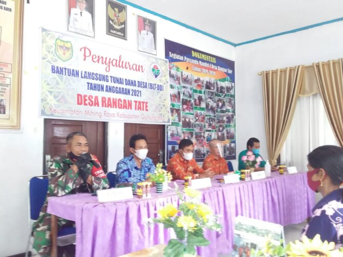 KUALA KURUN, Kalteng.co – Babinsa Koramil 1016 – 03/Sepang Serka Helprit, melakukan pendampingan penyaluran BLT DD Tahap II, di Aula Posyandu, Desa Rangan Tate Kecamatan Mihing Raya, Kabupaten Gunung Mas, Kamis (12/8/21).