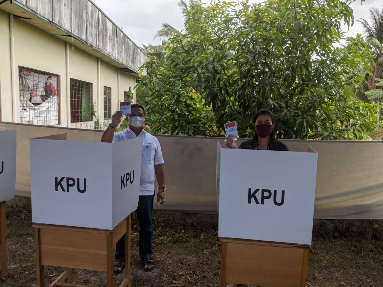 KUALA KAPUAS, kalteng.co – Wakil Ketua I DPRD Kabupaten Kapuas, Yohanes, ST bersama istri, melaksanakan pemungutan suara Pemilihan Kepala Daerah (Pilkada) Kalteng Tahun 2020 di Tempat Pemungutan Suara (TPS) 05 Kelurahan Selat Barat Kecamatan Selat Kabupaten Kapuas, Rabu (9/12).