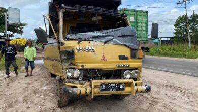 Tabrakan Karambol di Simpang Jalan Sanang Sabangau, Tiga Kendaraan Ringsek (Pick Up, Dump Truk, Sigra)
