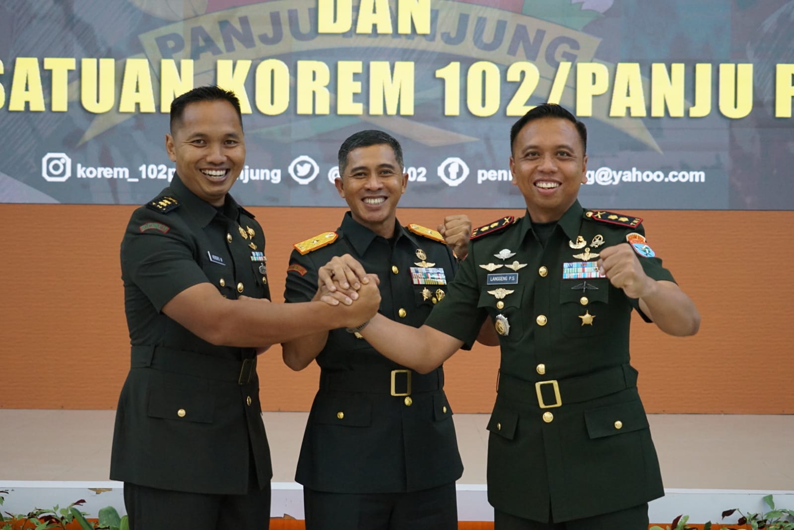 “Kami ucapkan terima kasih dan penghargaan kepada Letnan Kolonel Inf Hendro Wicaksono, S.I.P., atas pengabdian selama ini sebagai Dandim 1012/Btk, serta selamat kepada Letnan Kolonel Inf Langgeng Pujut Santoso, S.E., M.Han, atas tugas baru yang diemban,” ujar Danrem.