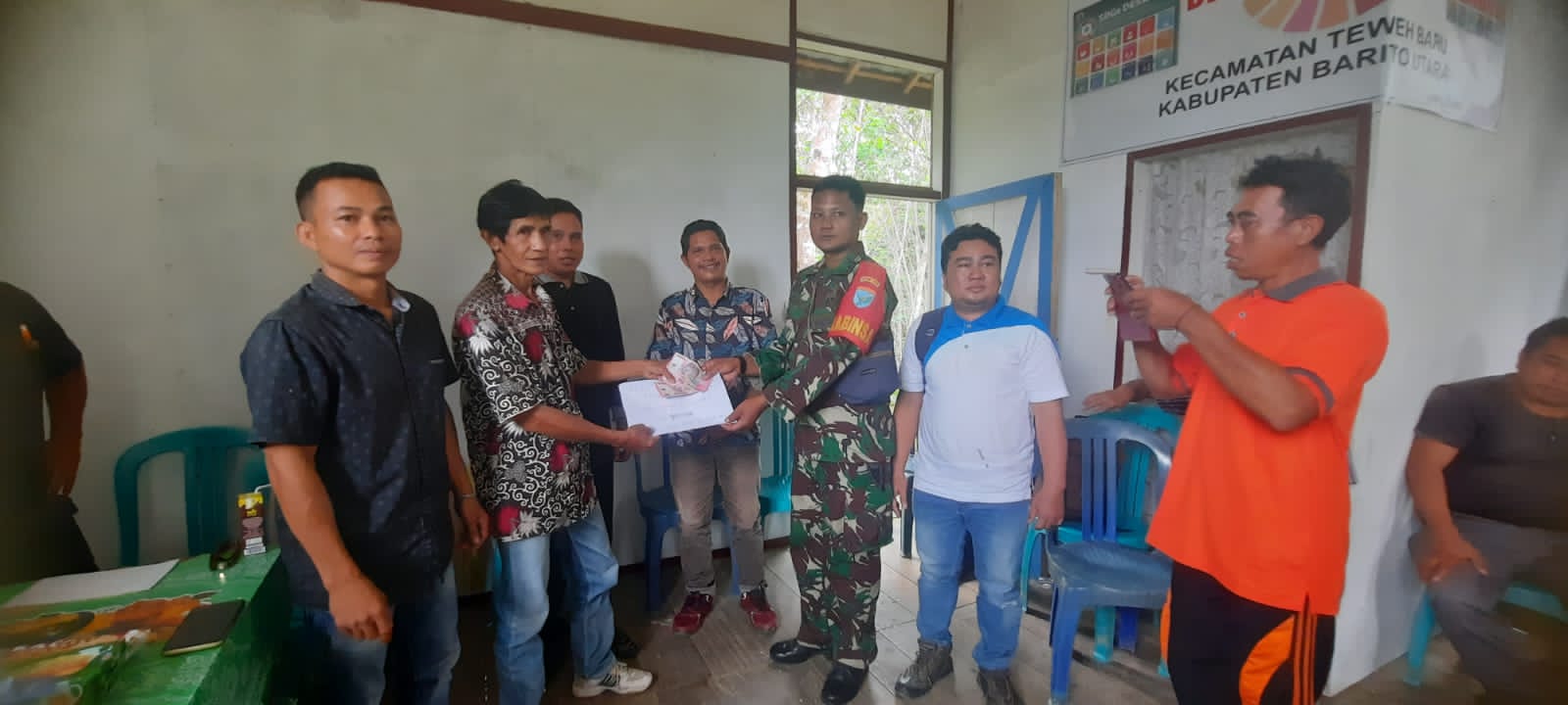 Turut hadir, Camat Teweh Baru, Kades Desa Liang Buah, Pendamping Desa Liang Buah, Babinsa 1013-03/Teweh Tengah, Mantir Adat Desa Liang Buah, Sekdes Desa Liang Buah, Masyrakat yang menerima bantuan BLTDD.