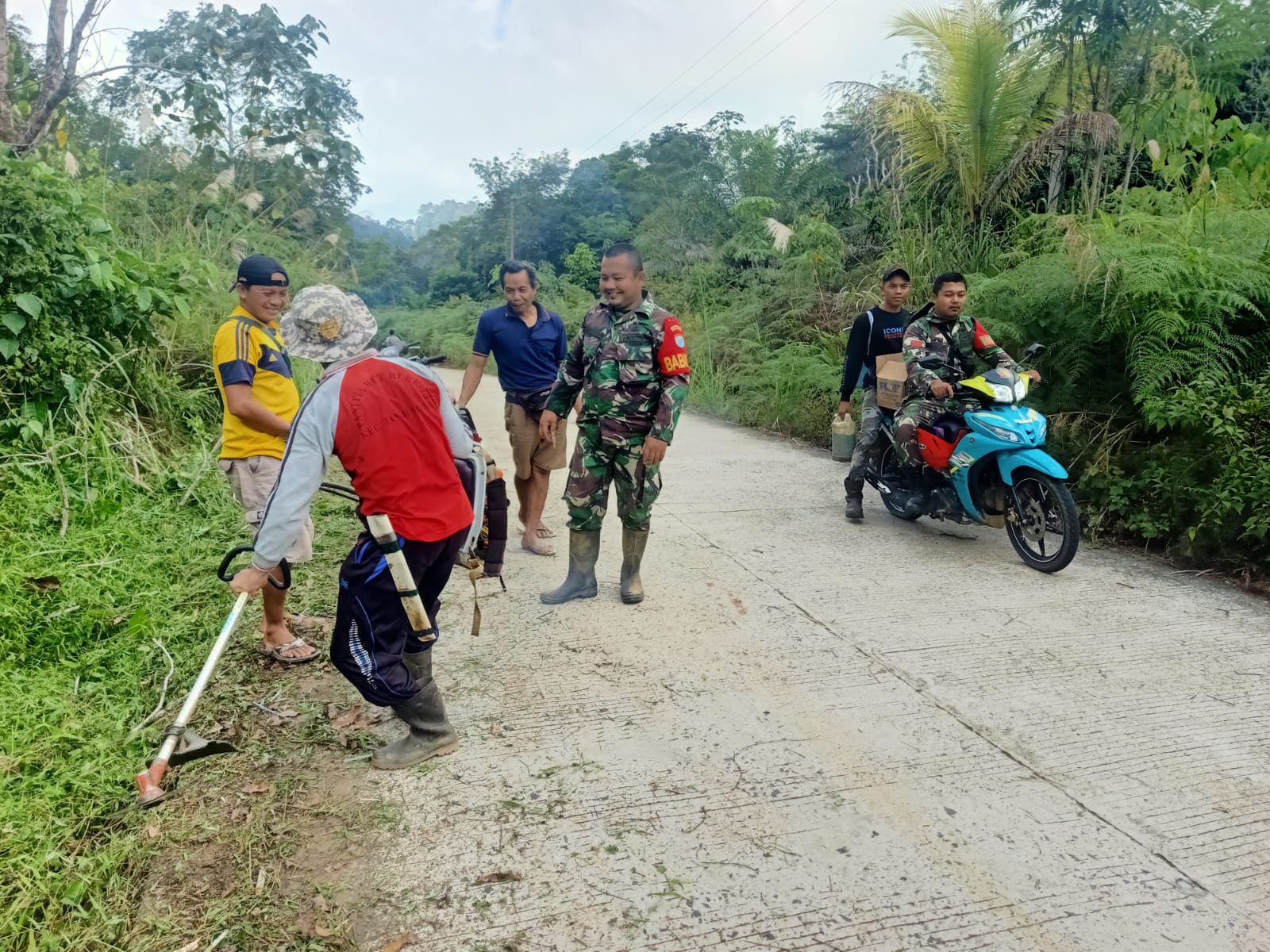 Babinsa Koramil 1013-10/Tanah Siang Bersama Warga Gotong Royong Bersihkan Jalan