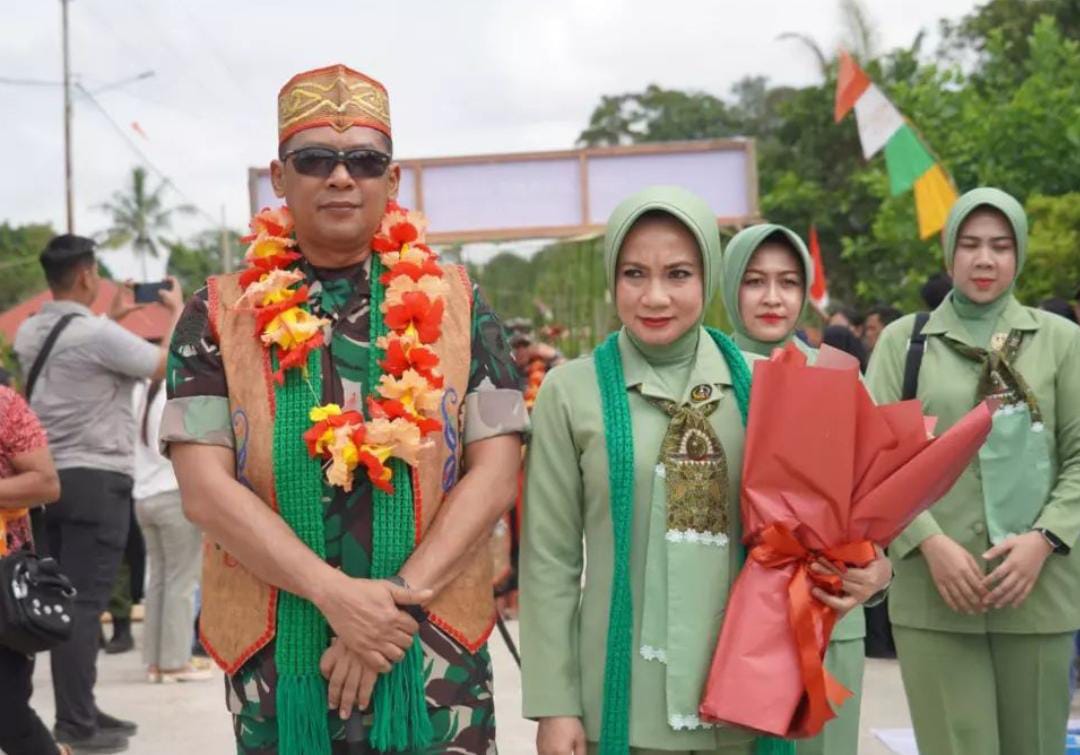MENGHADIRI UPACARA : Danrem 102/Pjg Brigjen TNI Bayu Permana di dampingi Ketua Persit KCK Koorcab Rem 102 PD XII/Tpr, Ny. Susi Sugandi menghadiri acara penutupan kegiatan program TMMD ke-117 TA 2023, Kamis (10/8/2023). FOTO IST